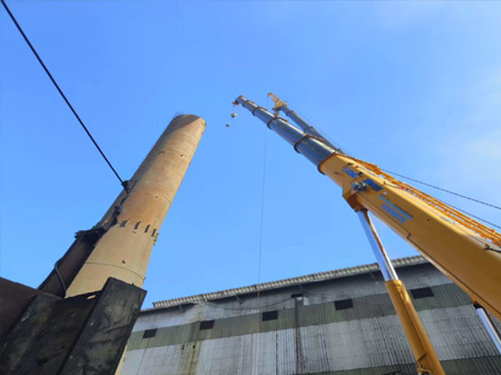 - 通常從煙囪的頂部開始拆除,使用吊車或其他提升設備將拆除人員和工具送達頂部。
